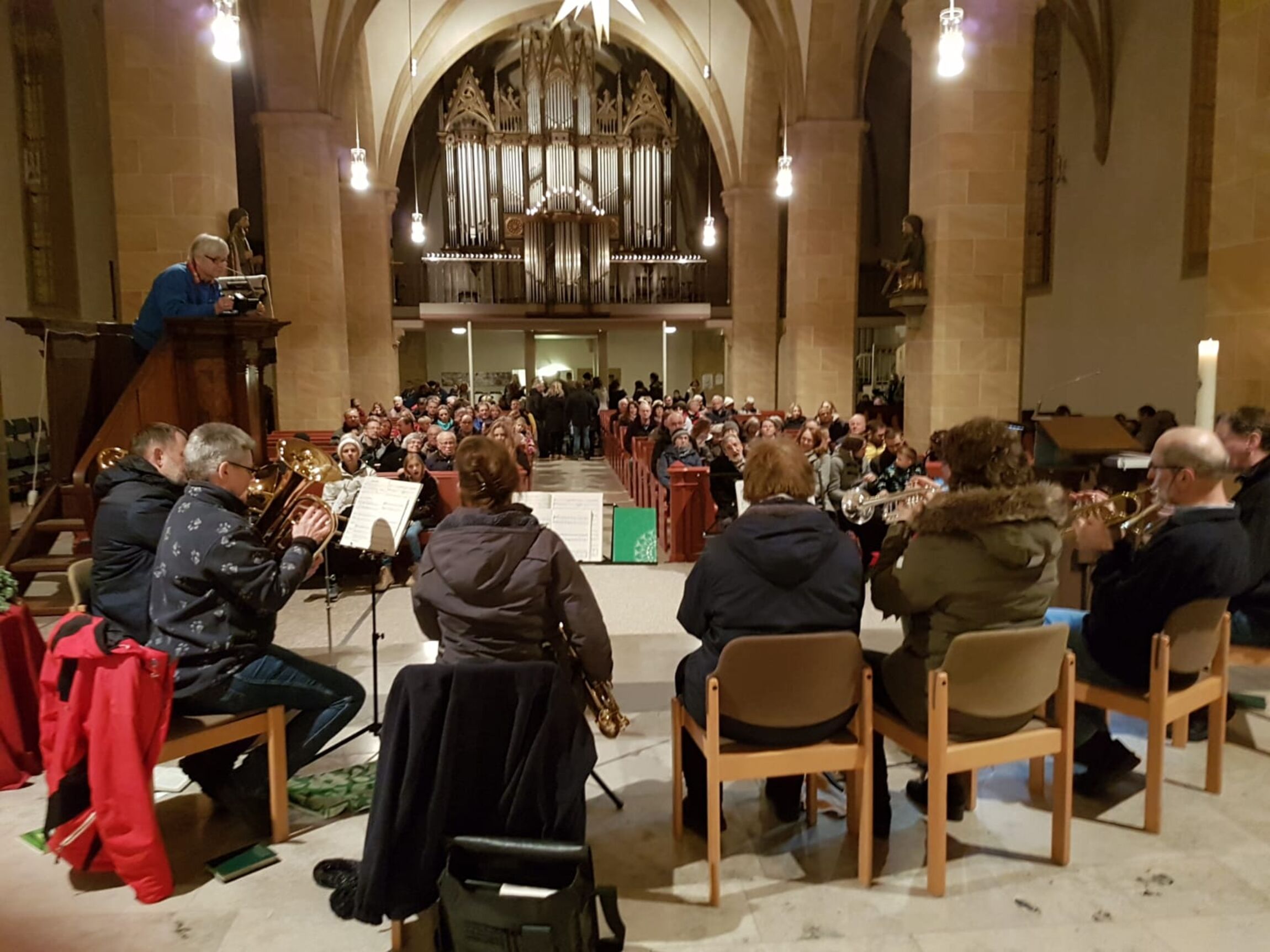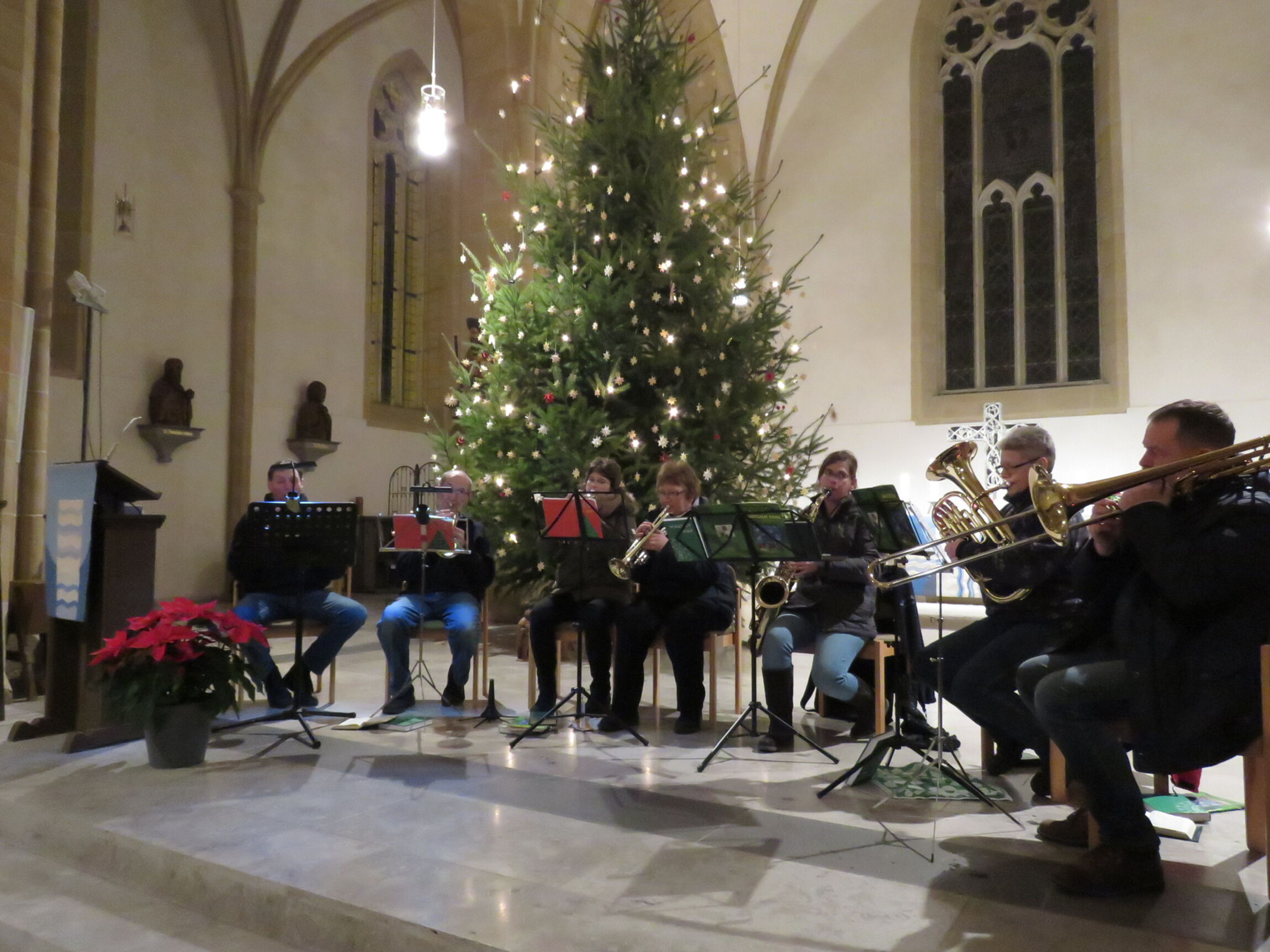 Am 1. Weihnachtsfeiertag um 16.30 Uhr war es wieder soweit. 7 Bläser des Bläserchores Ambergau machten sich auf, den Turm der St. Pankratius-Kirche zu erklimmen, um, wie jedes Jahr, weihnachtliche Weisen vom Turm über die ganze Stadt zu senden. Anschließend gab der Bläserchor noch ein Kurzkonzert an der Krippe in der Kirche. Der Erwachsenenkreis schenkte Glühwein und Feuerzangenbowle aus. Wer wollte, konnte sich auch eine der leckeren Waffeln gönnen. Eine rundherum gelungene Veranstaltung - seit nunmehr 27 Jahren.