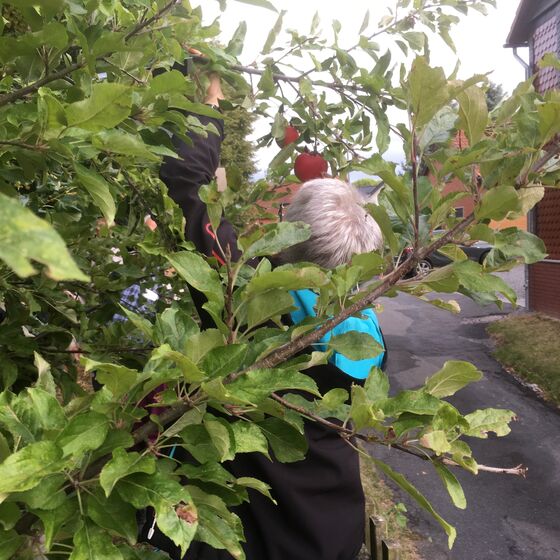 Königsdahlum. Am letzten Freitag, 13.09.2019 haben die Teilnehmer der Andacht 5 nach 6 vor der Kirche, auf dem Kirchvorplatz Äpfel geerntet, die wir am Freitag vor Erntedank verzehren wollen. Allerdings in veränderter Form, wir wollen Apfelmuss und mehr……genießen.