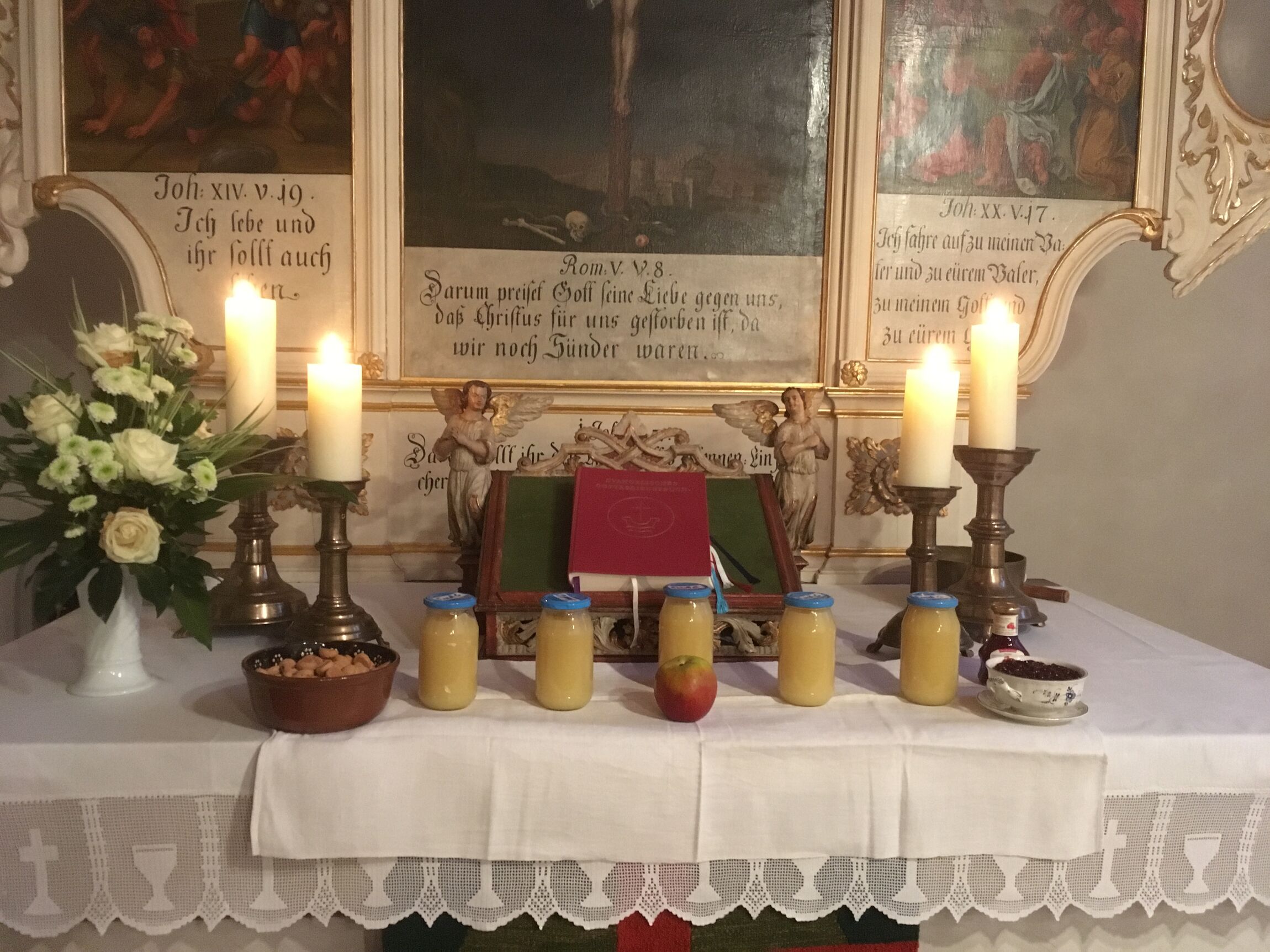 Königsdahlum. Als Auftakt zum Erntedank-Wochenende hat Ulrich Gräbig dem Apfel eine ganze Andacht gewidmet. Geschichten rund um den Apfel findet man schon vor 2000 Jahren, was beweist, dass man ihn nicht nur als Kuchen oder Süßspeise verehrt hat, sondern er für die Menschen in vielerlei Hinsicht Bedeutung hatte. Nach einem Apfel-Gebet haben wir gemeinsam das von den Kirchen-Äpfeln gekochte Apfelmuss verspeist, köstlich. Für unsere neuen Vorkonfirmanden eine gute Gelegenheit die Kirche auch mal von einer anderen Seite kennenzulernen.