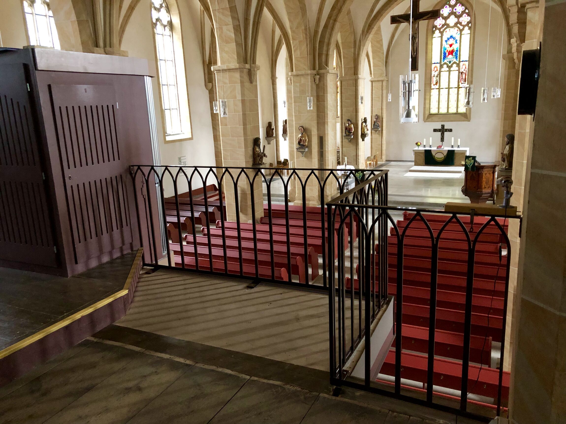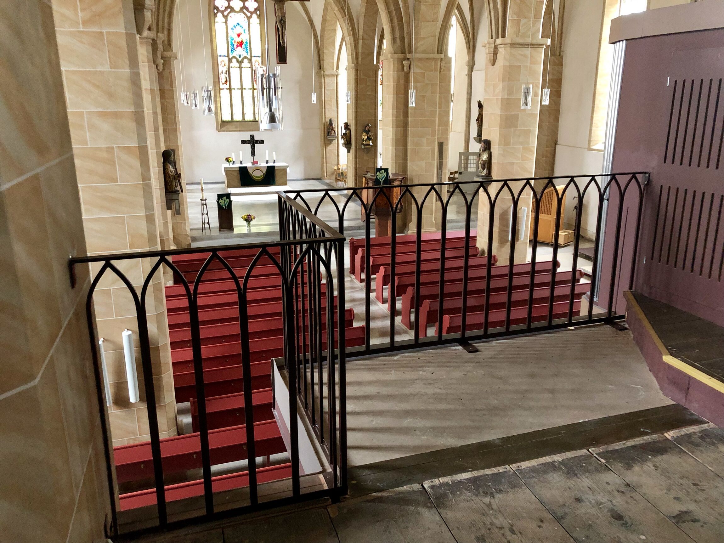 Endlich ist es geschafft: Unsere Orgelempore ziert ein neues Geländer. Es ist zwar wieder ein Provisorium, erfüllt aber wesentlich besser seinen Zweck als das alte Geländer und sieht auch noch sehr gut aus. Dank der großzügigen Spende der Kantorei an St. Pankratius war diese Anschaffung allerdings erst möglich. Gefertigt wurde es von der Firma Timm Metallbau aus Bockenem. Herzlichen Dank allen Beteiligten.