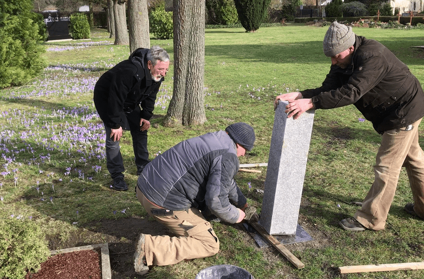 Am Freitag, dem 29.Februar wurde auf unserem Friedhof eine erste Stele für Baumbestattungen aufgestellt. Auf der Stele wird, wenn es zu einer Bestattung am Baum kommt, eine Bronzetafel angebracht ...