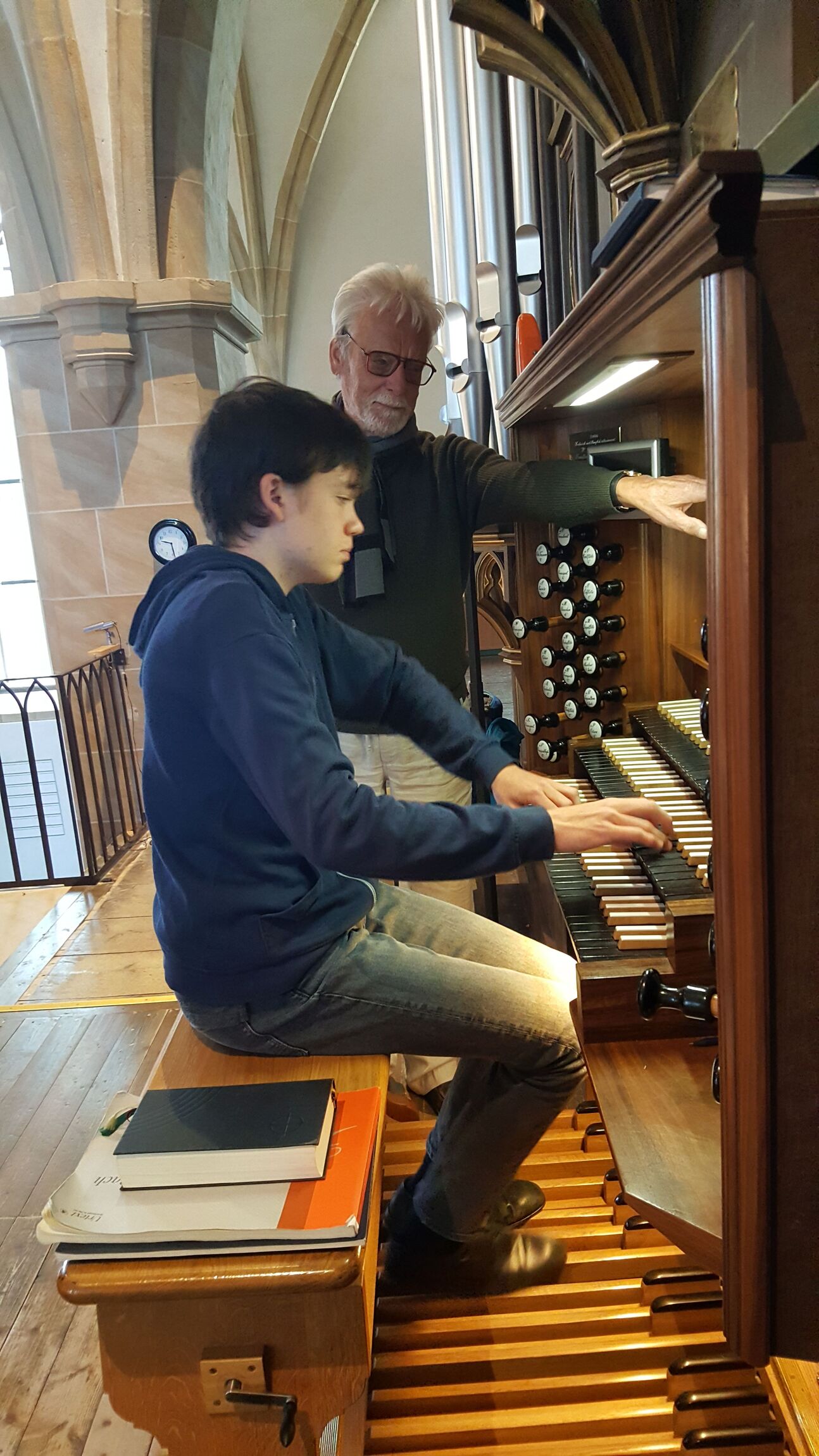 Bockenem. „Sie haben hier in Bockenem eine ganz tolle Orgel.“ Damit eröffnet Gastorganist Julian Becker seine kurze Einführung in die Orgelwerke, die er beim Trinitatis-Gottesdienst für die zahlreich erschienenen, gleichwohl mit Abstand platzierten Besucherinnen und Besucher in der großen St. Pankratiuskirche spielen wollte. Obwohl der junge Musiker erst 14 Jahre alt ist, hat sein Urteil Gewicht. Denn er saß bereits an bedeutenden Orgeln in Leipzig, Lübeck, Hannover oder auch in Belfast. Der Hannoversche Schüler der 10. Klasse gehört als musikalisches Ausnahme-Talent zu den Jung-Studenten der Musikhochschule Hannover und errang bereits zahlreiche Preise. Mit seinem Gastspiel sollte ursprünglich die diesjährige Reihe „Musik in Pankratius“ eröffnet werden. Das ging aus aktuellem Anlass nicht. Als kirchlich engagierter Jugendlicher war er aber bereit, mit seiner Kunst den Gottesdienst in Bockenem besonders festlich zu gestalten. Und das war eine Bereicherung. Schon mit dem ersten Werk, dem lebendigen Präludium in g-moll von D. Buxtehude zeigte er durch farbige Registrierung, abgestufte Artikulation und frischer Spielfreude, dass die Orgel sein Instrument ist. Mit den ruhiger angelegten Variationen über ein Thema des Renaissance-Musiker Clément Jannequin, die J. A. Alain im Jahr 1937 komponierte, machte er einen wohlklingenden Ausflug in die Klangwelt der französischen Orgelkunst. Das vollkommen transparent gestaltete Allegro aus der Triosonate Nr. 5 in C-Dur von J.S. Bach gestaltete er mit seinem gleichberechtigten Zusammenspiel der drei Flöten- und Prinzipalregister zu einem musikalischen Reflex auf die nachdenkliche Predigt des Pastors Ralph Strack über die Dreieinigkeit. Zum Schluss dann ein fulminantes Finale mit Bachs Fantasie und Fuge in g-moll BWV 542. Kreativ organisierte Becker die unterschiedlichen Klangfarben der Fantasie, um dann mit fast zu viel jugendlich überschäumendem Temperament, gleichwohl wie am Schnürchen laufender Finger- und Fußfertigkeit durch das Wunderwerk der Fuge zu stürmen. Viel Beifall für ein kirchenmusikalisches Ereignis, das sich bestens in den feierlichen Charakter dieses besonderen Sonntags im Kirchenjahr einordnete.