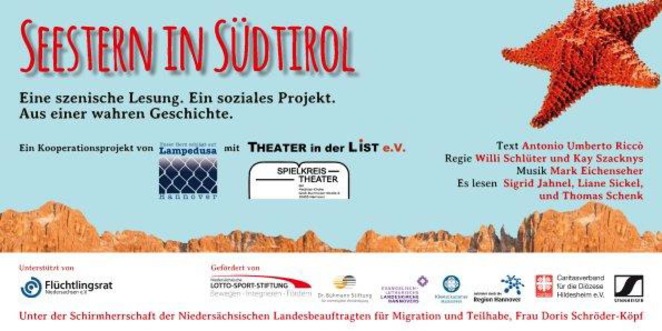 Im Rahmen der Woche der Diakonie vom 5.-12. September, die unter dem Focus „MITGESTALTEN“ steht, lädt die Diakonie in der Region Hildesheim und Peine zu einer Szenischen Lesung ein. Das Stück „Seestern in Südtirol“ von Antonio Umberto Ricco wird an verschiedenen Orten in der Region aufgeführt.