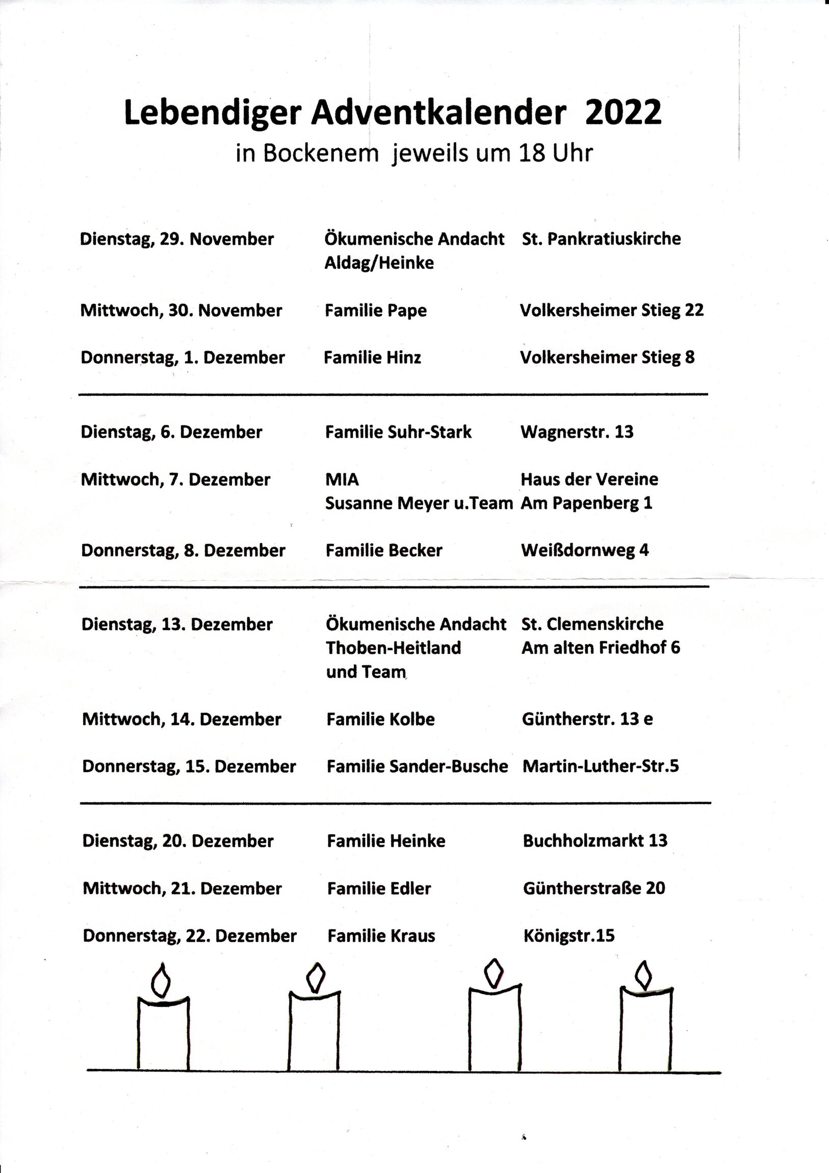 Immer am Dienstag, Mittwoch und Donnerstag treffen sich Menschen in Bockenem zum Singen und Plaudern zum "Lebendigen Advent".