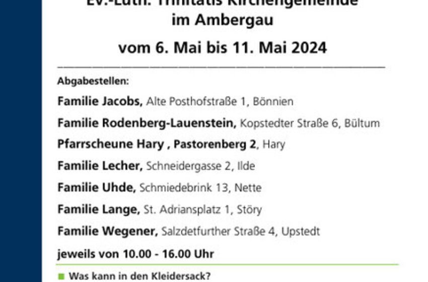 Zum 01.01.2025 sind in den Evangelisch-Lutherischen Kirchengemeinden St. Pankratius in Bockenem/St. Johannis Königsdahlum und der Trinitatis-Kirchengemeinde im Ambergau die Stellen einer ...