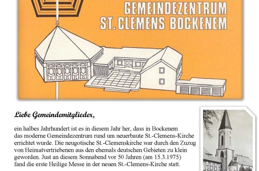 Die evangelische Gemeinde Bockenem-Königsdahlum gratuliert der katholischen St. Clemens – Gemeinde ganz herzlich zum 50. Jubiläum der allerersten Messe in der neuen Clemens- Kirche am ...