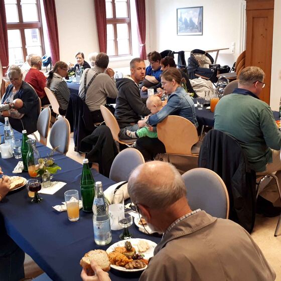 Ausdrücklich eingeladen waren auch Familienangehörige, die nicht schon wieder auf Gatte/in, Mutter oder Vater verzichten sollten, weil die einmal mehr "mit Kirchens unterwegs waren". So waren es über 30 Erwachsene und eben auch Kinder, die es sich bei leckeren Speisen und munteren Gesprächen gut gehen ließen.