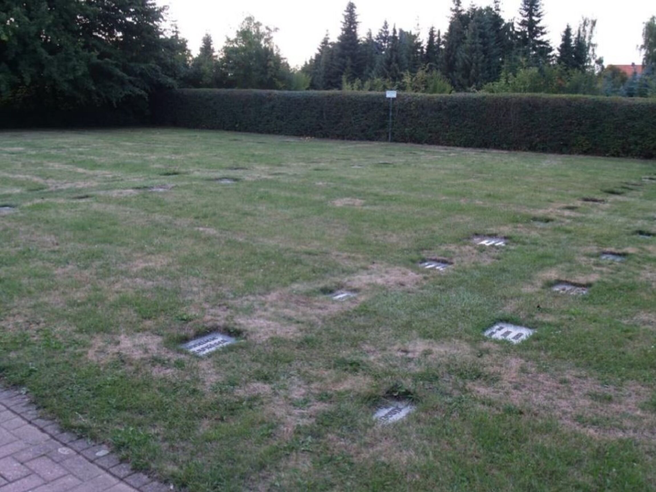 Die Gestaltung erfolgt mit einer 400 mm x 300 mm x 60 mm großen, ebenerdig im Boden liegenden Steinplatte (Querformat), die mindestens den Vor- und Zunamen des Verstorbenen enthält. Die Beschaffung und das Setzen der Steinplatte erfolgt ausschließlich durch den Friedhofsträger. Es besteht dabei die Möglichkeit, dass ein einfaches Ornament in die Gestaltung der Grabplatte einfließt. Die Kosten der Steinplatte bestimmen sich nach der Friedhofsgebührenordnung.