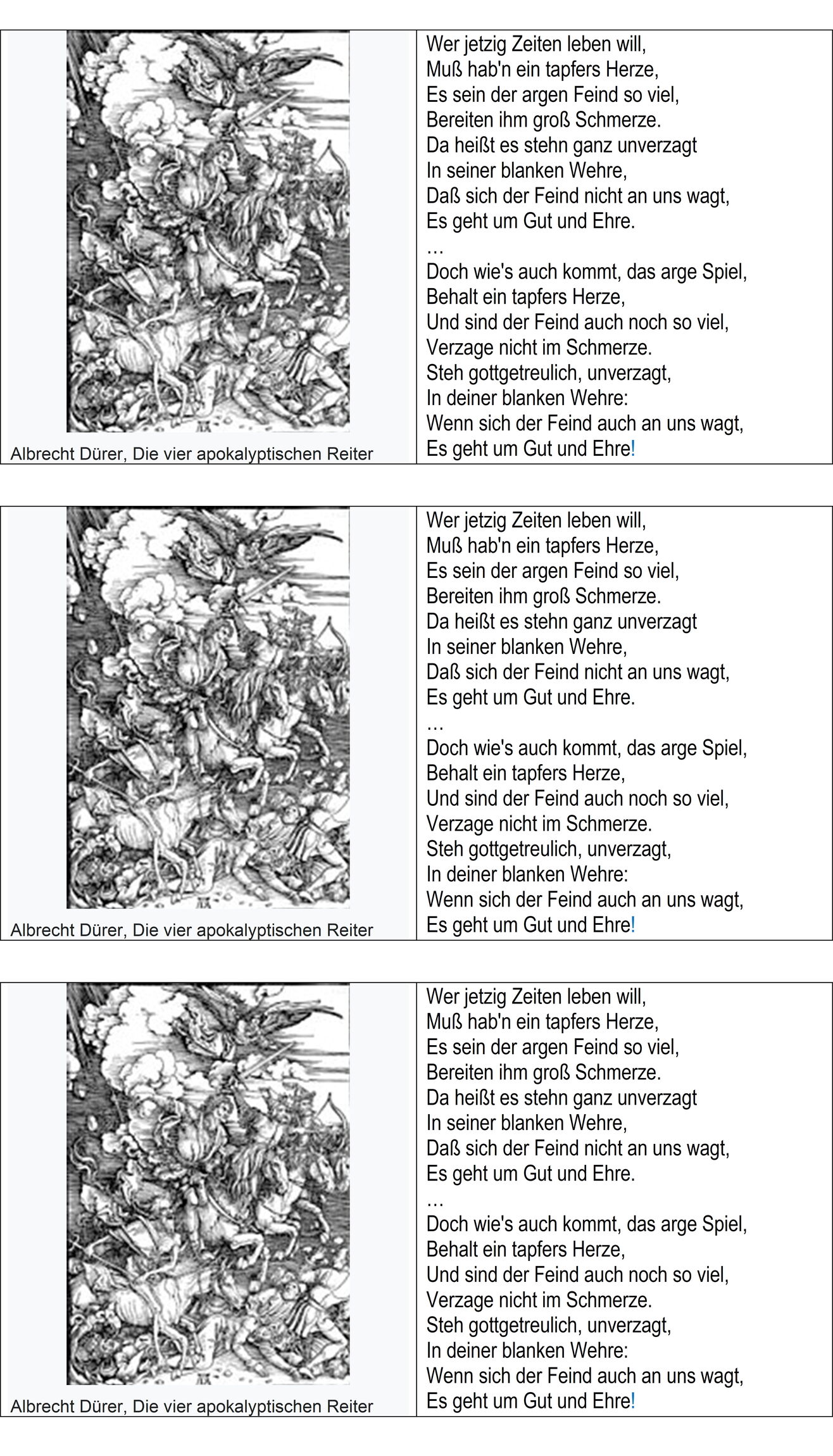 Vielleicht kennen Sie diesen Holzschnitt. Albrecht Dürer hat die vier apokalyptischen Reiter dargestellt.