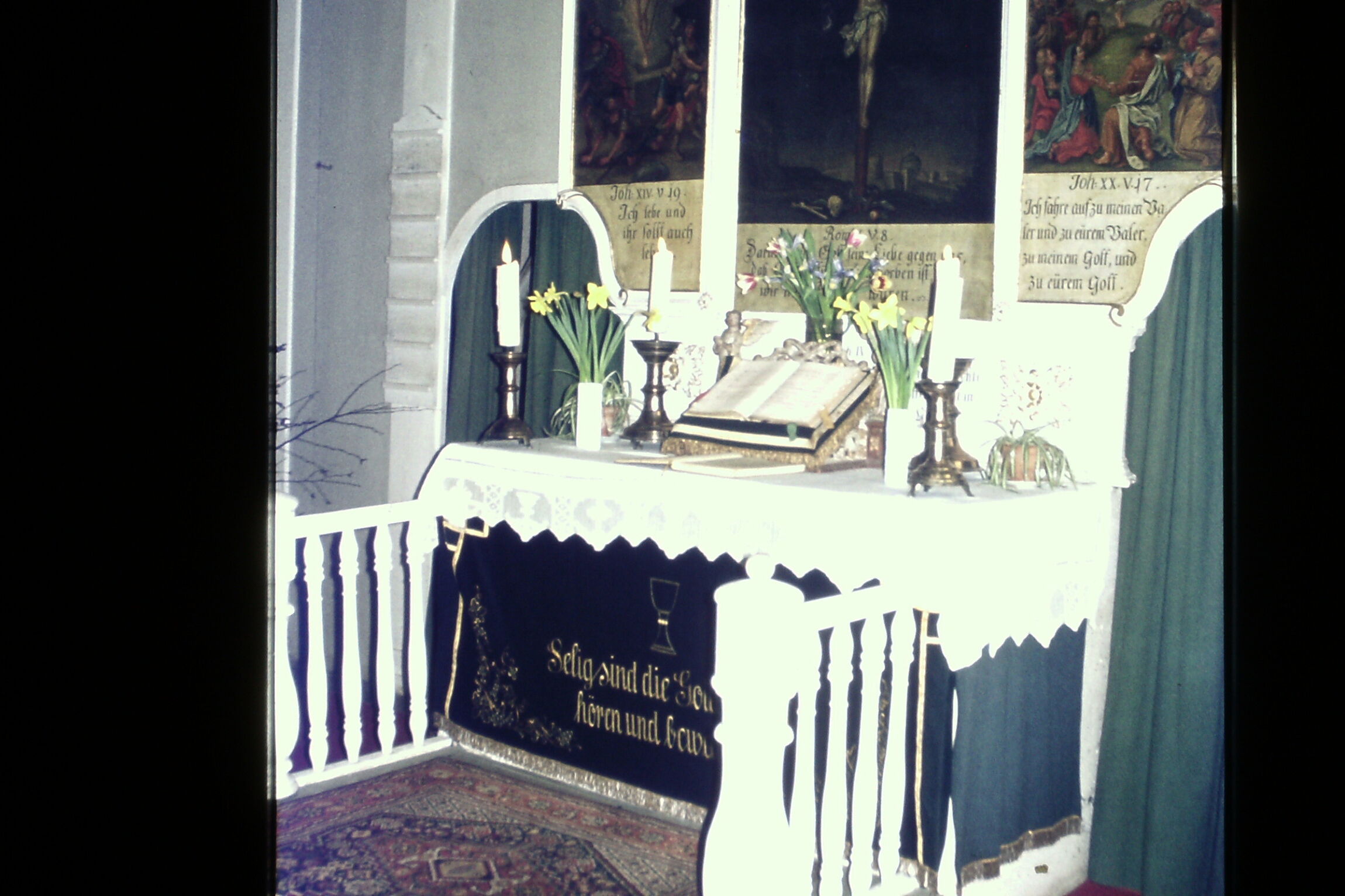 1974 wurde eine erneute Renovierung und Umgestaltung vorgenommen: „Völlig neu wurde der Altar gestaltet und die Renovierung des vorher stark verschmutzten Altarbildes kann als hervorragend bezeichnet werden. Der gesamte Innenraum wurde überholt und ausgemalt. Fußboden und Gestühl, Decke und Türen sind neu. Die Empore wurde aufgearbeitet, die Südempore fortgenommen. (Philipps, a.a.O., S.34)
