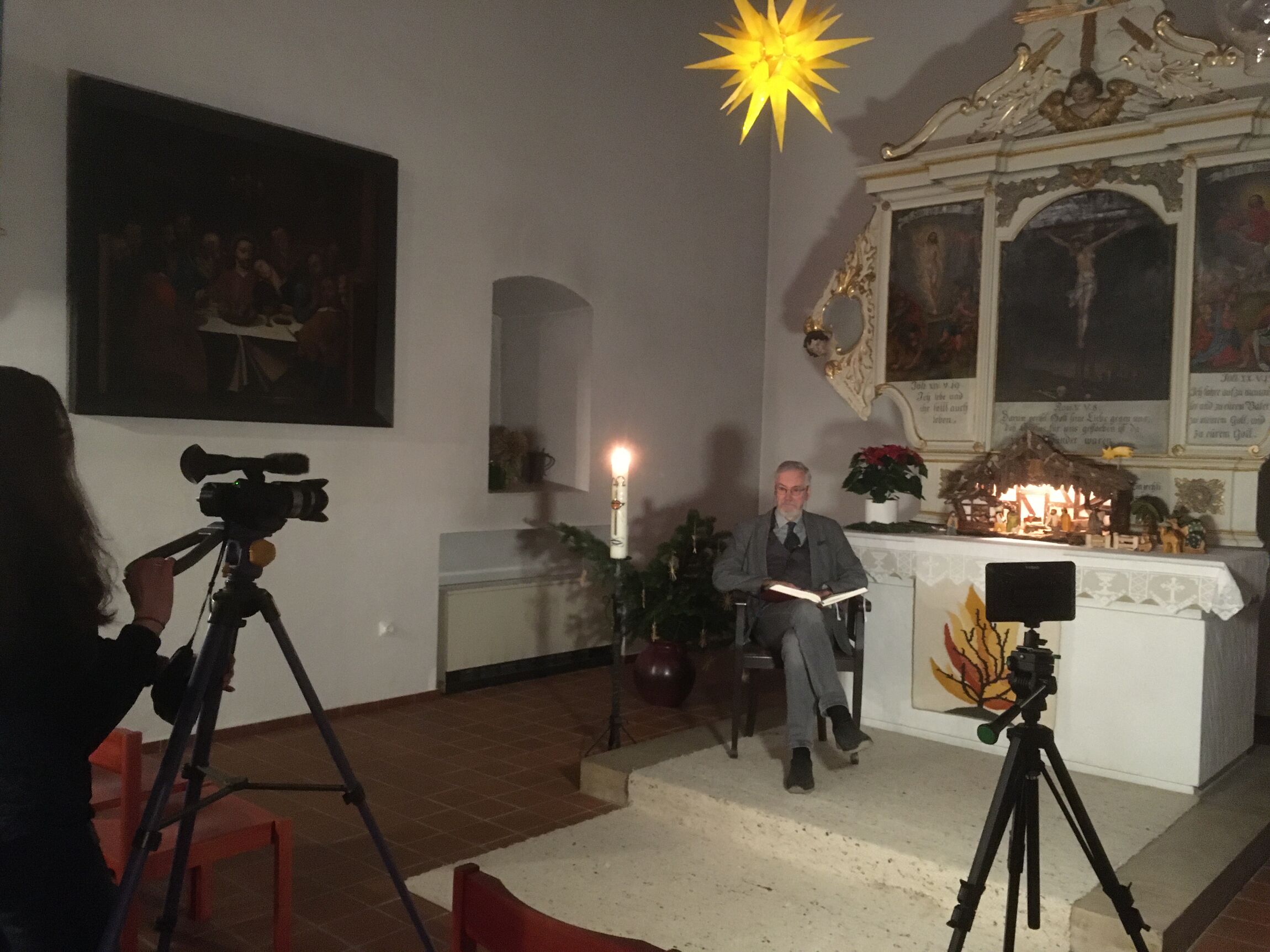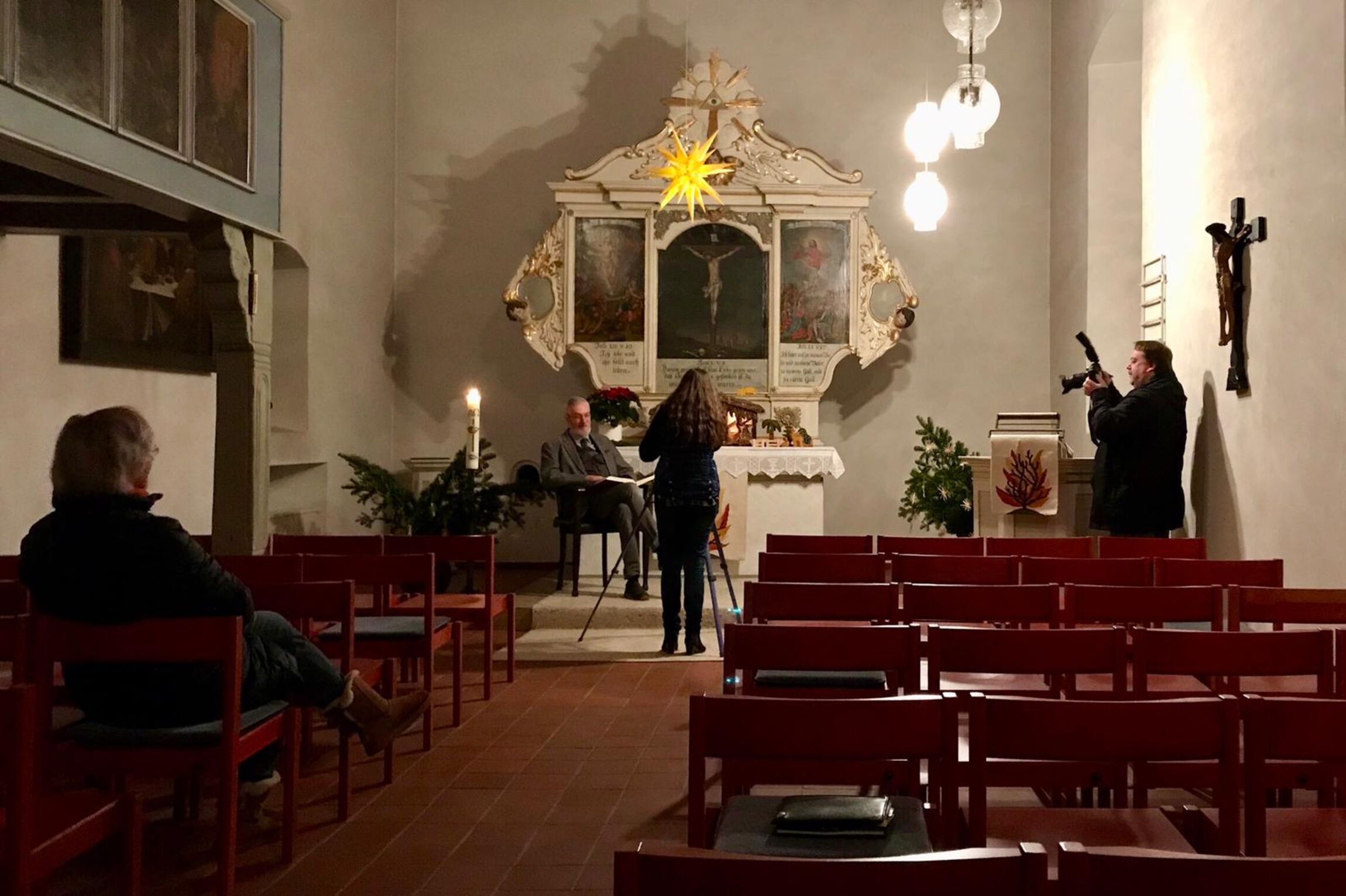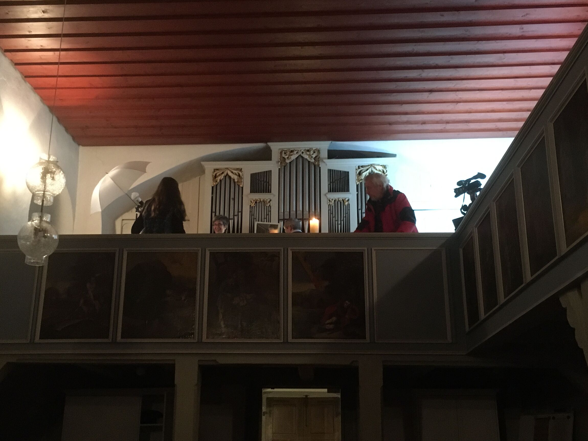 Auch drinnen war alles weihnachtlich geschmückt. Zusätzlich gab es Scheinwerferlicht! Unter Leitung von B.Edler und H.Heinke wurden nämlich Teile eines Gottesdienstes gefilmt!