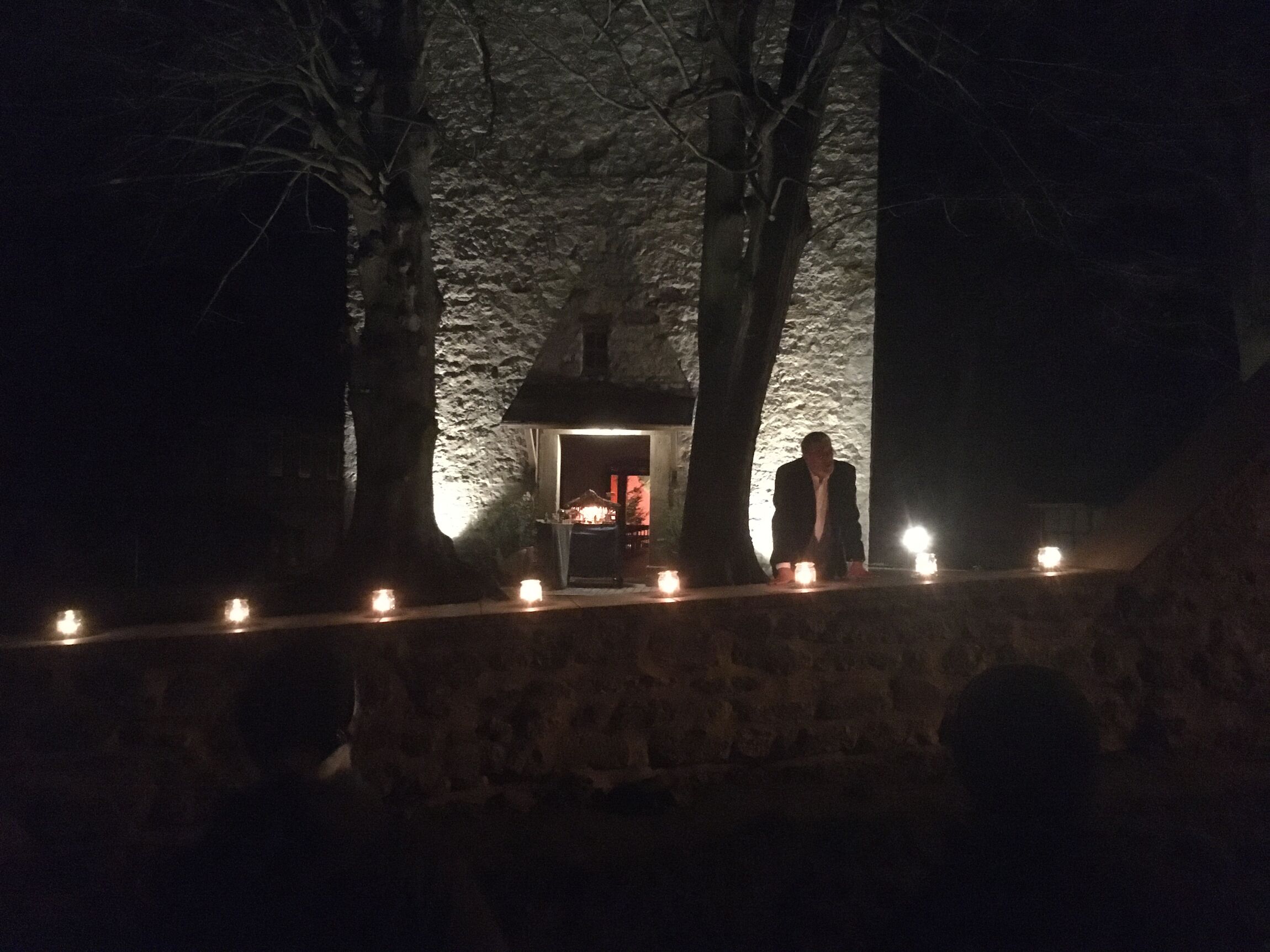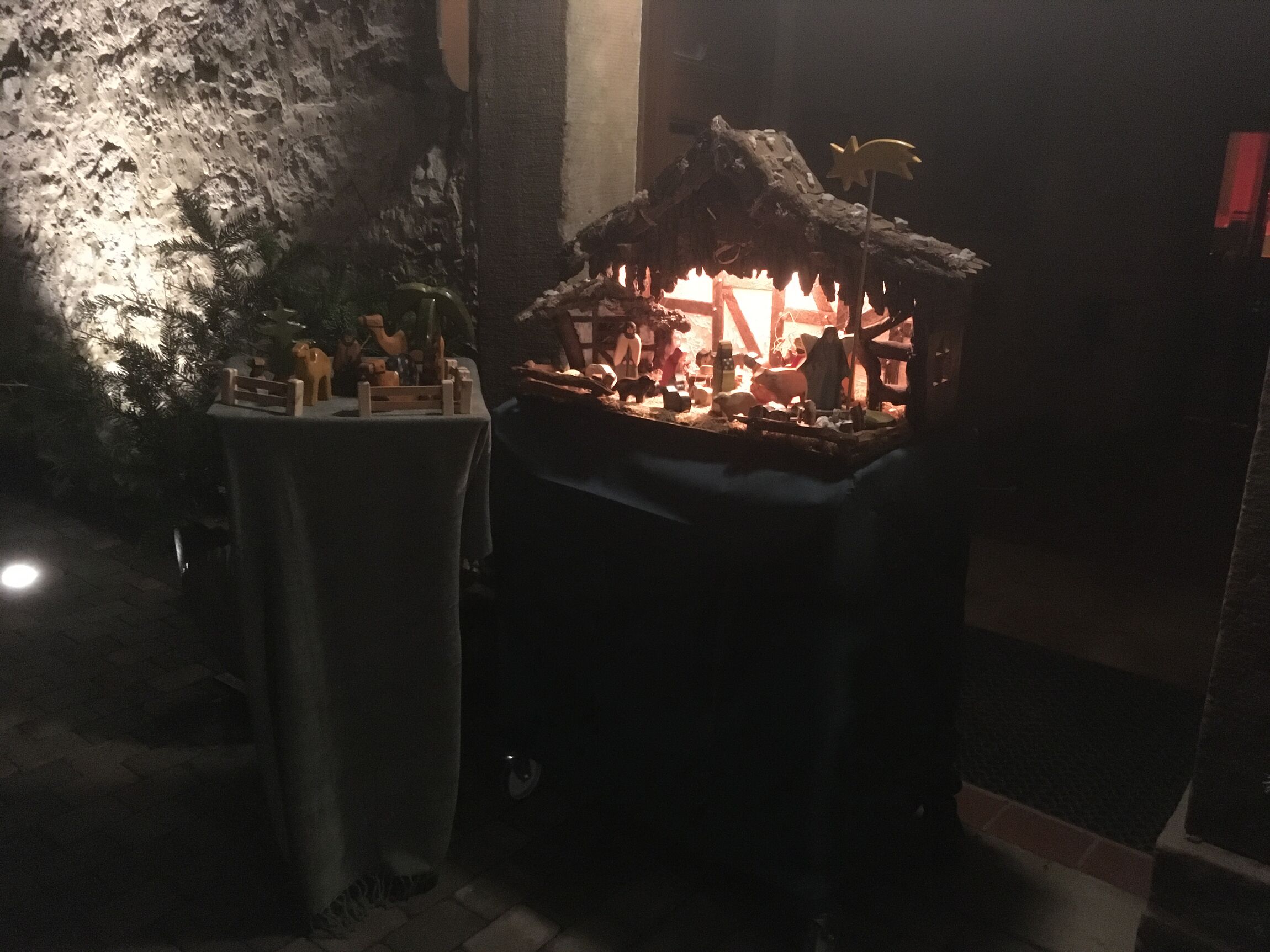 Es war kein Raum in der Herberge! In der Tat – Corona hatte uns Heiligabend die Kirche verschlossen. Wir mussten – und konnten! - die Krippe „draußen vor der Tür“ aufstellen. Und mit Hilfe unserer Beleuchtung und den Teelicht-Gläsern auf der Mauer gab es somit einen kleinen Abglanz von „der Herrlichkeit des Herrn“ …