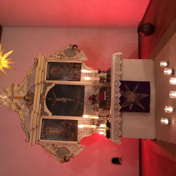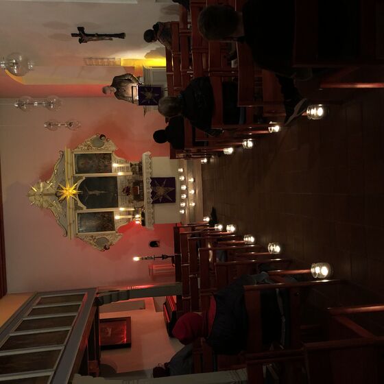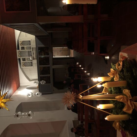… gegen Dunkelheit und manche „Leblosigkeit“ in Corona-Zeiten, das war die Botschaft bei 5nach6 vor dem 4. Advent – eine Botschaft, die mit (fast) allen Sinnen zu fassen war. Eine Lichterreihe auf dem Gang lenkte das Auge auf den Adventskranz auf dem illuminierten Altar. Für die Ohren gab es allerlei Erhellendes über Lebkuchen zu erfahren. Zunge und Nase konnten Geschmack und Geruch von Lebkuchen spüren. Alles in allem – ein Vorgechmack auf Heiligabend und Weihnachten.